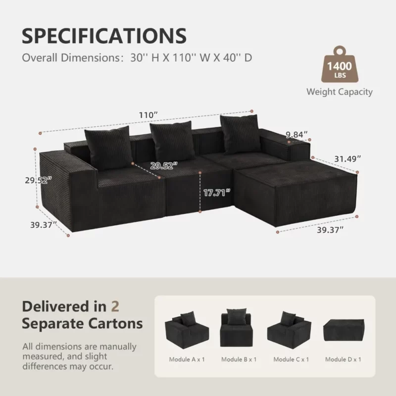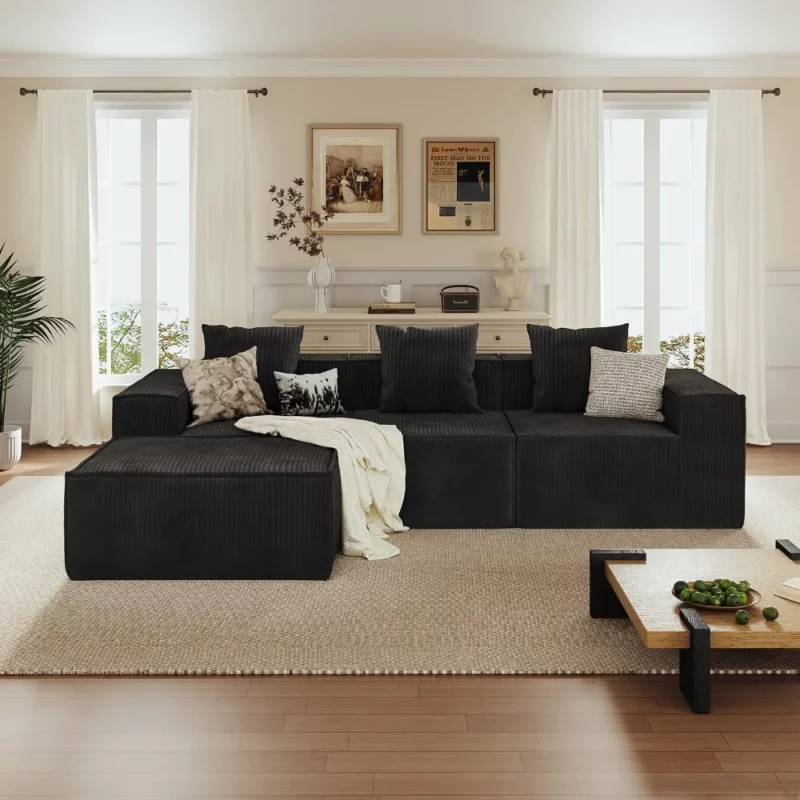 $334.00 – $453.00Price range: $334.00 through $453.0097″ L Shaped Modular Sectional Sofa Deep Seat Corduroy Fluffy Comfy Living Room Left Chaise Black Customized