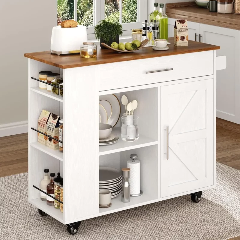 $671.00 – $781.00Price range: $671.00 through $781.00Rolling Kitchen Island with Drop Leaf, 4 Cabinet Doors, 3 Drawers & Side Storage Racks, Mobile Kitchen Cart with, Customized
