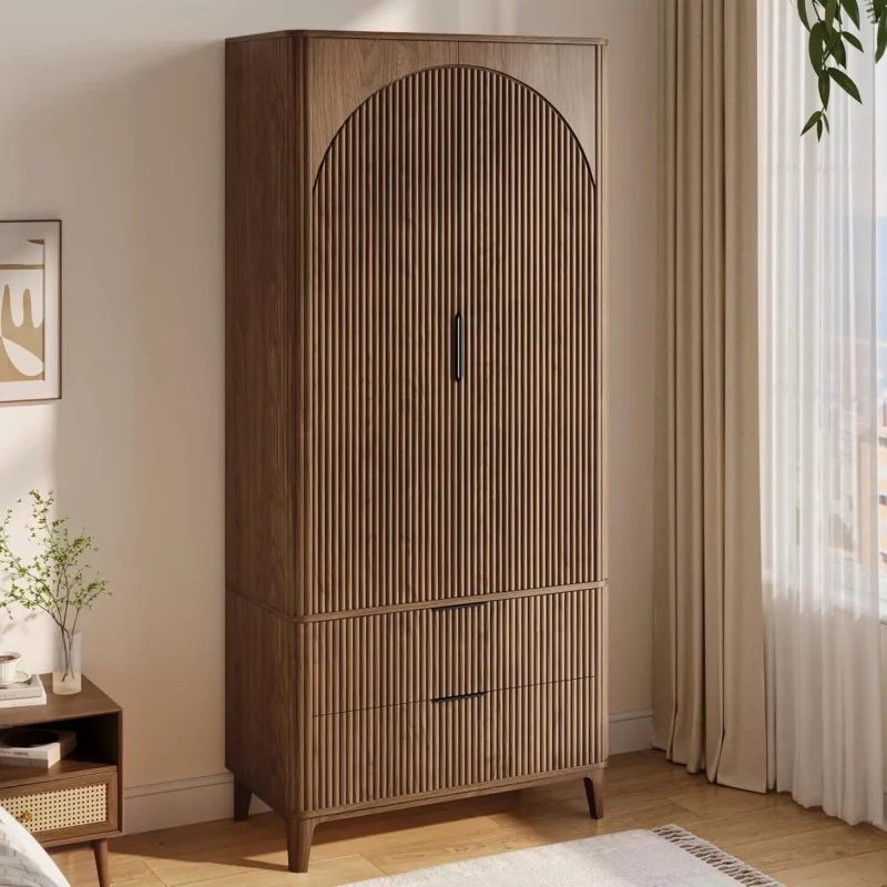 $274.00 – $279.00Price range: $274.00 through $279.00Fluted Wardrobe Closet Armoire with Doors And Drawers, Wardrobe Cabinet with Hanging Rack, Bedroom Closet Wood, Customized