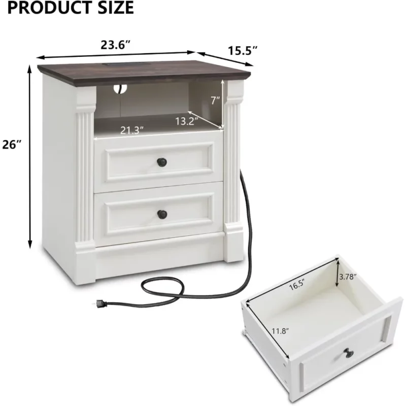 $373.00 – $393.00Price range: $373.00 through $393.00Nightstand with Charging Station, End Table, Side Table with 2 Drawers Storage Cabinet for Bedroom, Living Room,, Customized