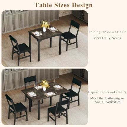 Dining Table Set for 4, Extendable Kitchen Table Cushion Chairs Set of 4, Rectangle Dining Table with Metal Frame & MDF Board, F