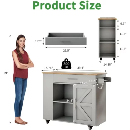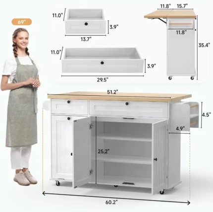 Kitchen Island Cart Storage Cabinet Spice&Towel Rack Drawer Open Shelves White, Customized