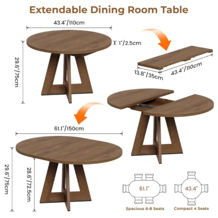 Extendable Round Dining Table for 4-8,Modern Kitchen Oval Dining Table with Removable Leaves Space Saving,Wood Base, Customized