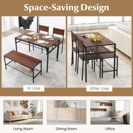 4-Piece Dining Set: Kitchen Table with 2 Chairs or Bench, Storage Racks, Metal & Space-Saving Design for Small Spaces