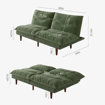 65″ Convertible Loveseat Sofa Bed, 2-in-1 Folding Sofa Bed With 2 Pillow For Small Spaces, Modern Sleeper Couch For, Customized