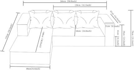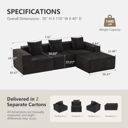 97″ L Shaped Modular Sectional Sofa Deep Seat Corduroy Fluffy Comfy Living Room Left Chaise Black Customized