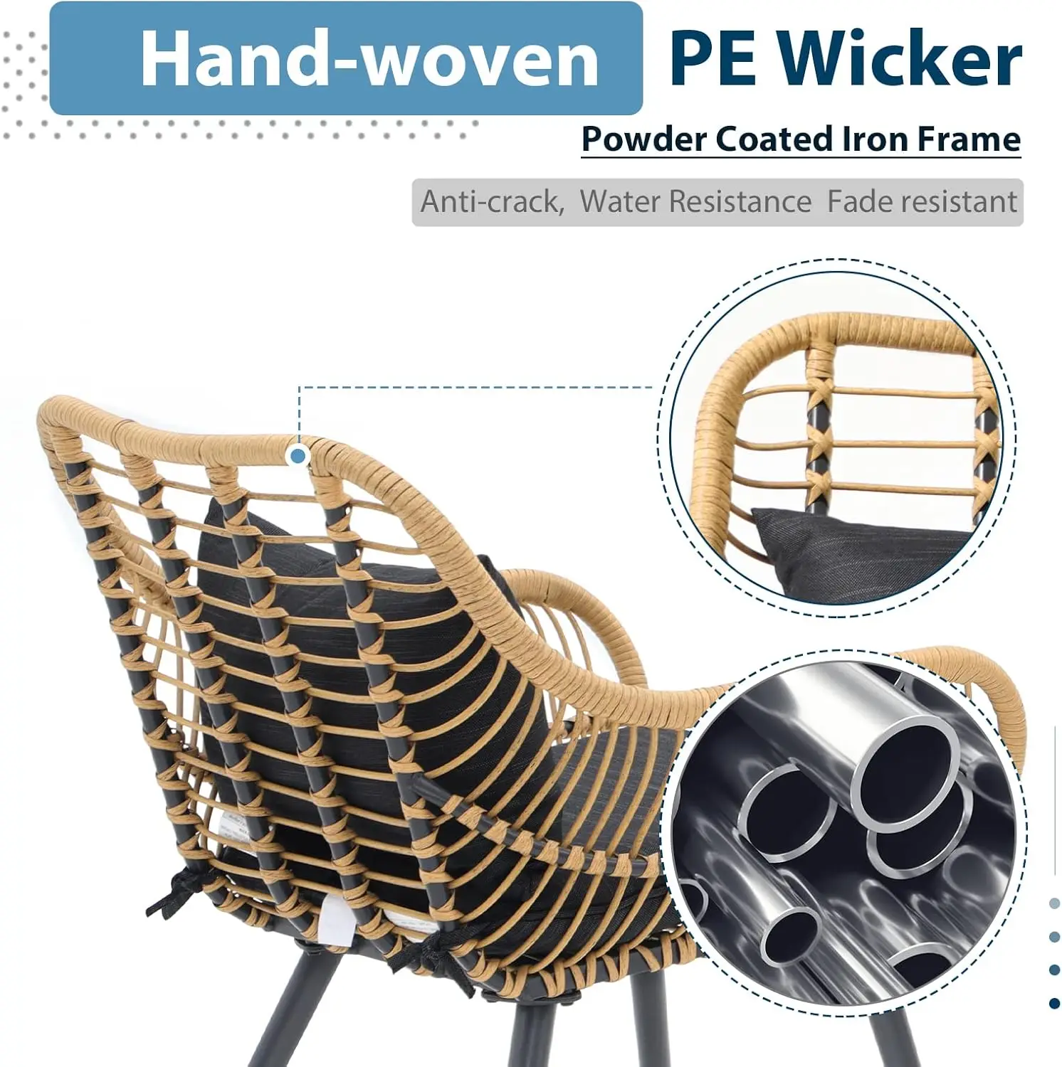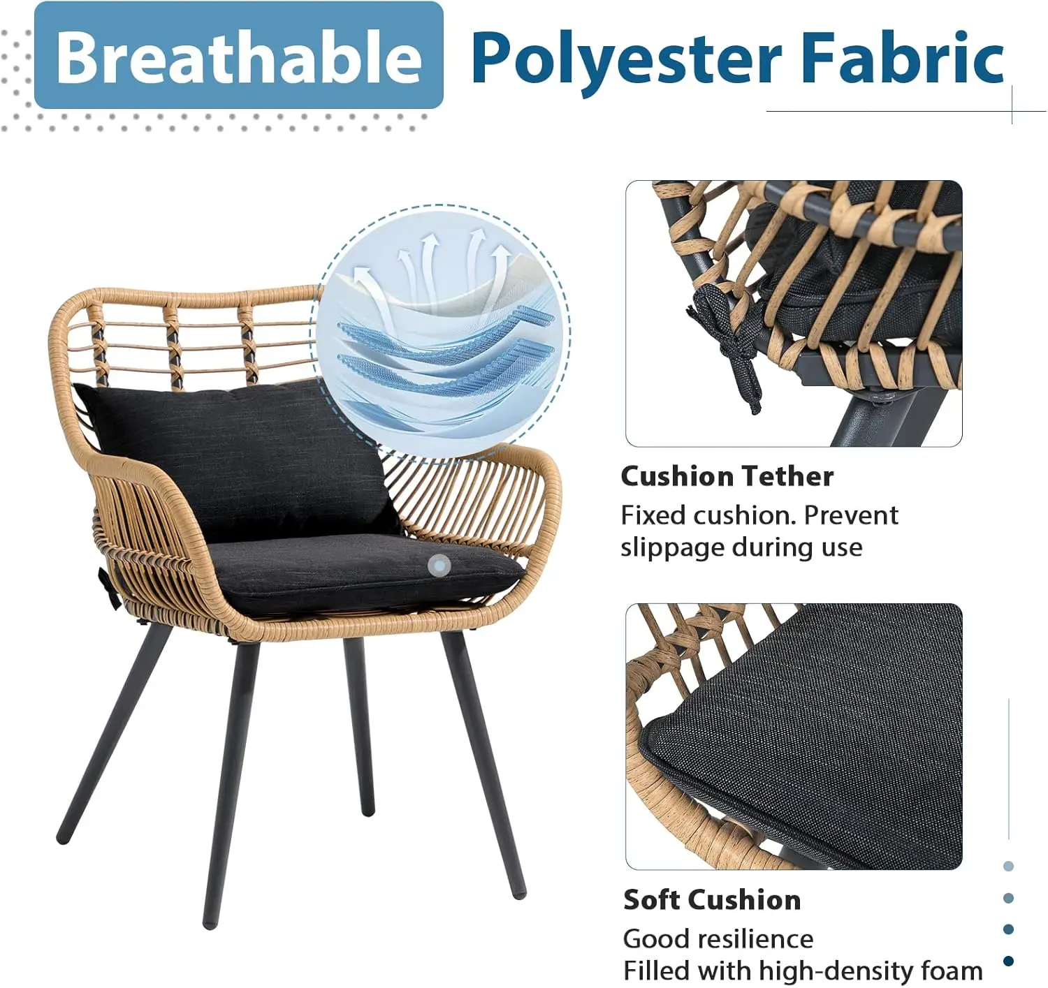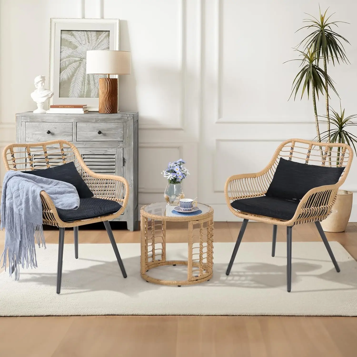 Be the first to review “3-Piece Patio Bistro Set, Wicker Outdoor Rattan Seating with Glass Top Table, Black” Cancel reply