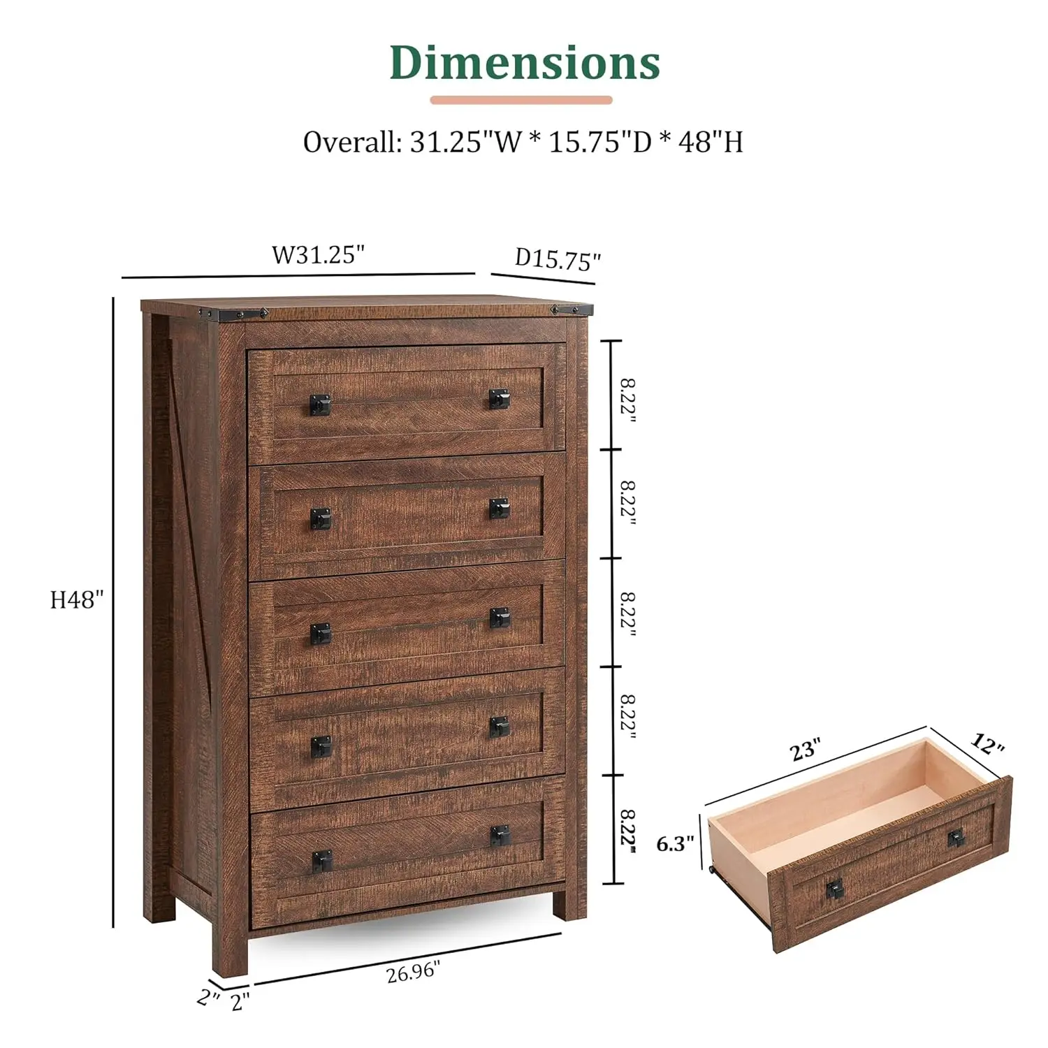 - Number of Drawers: 5