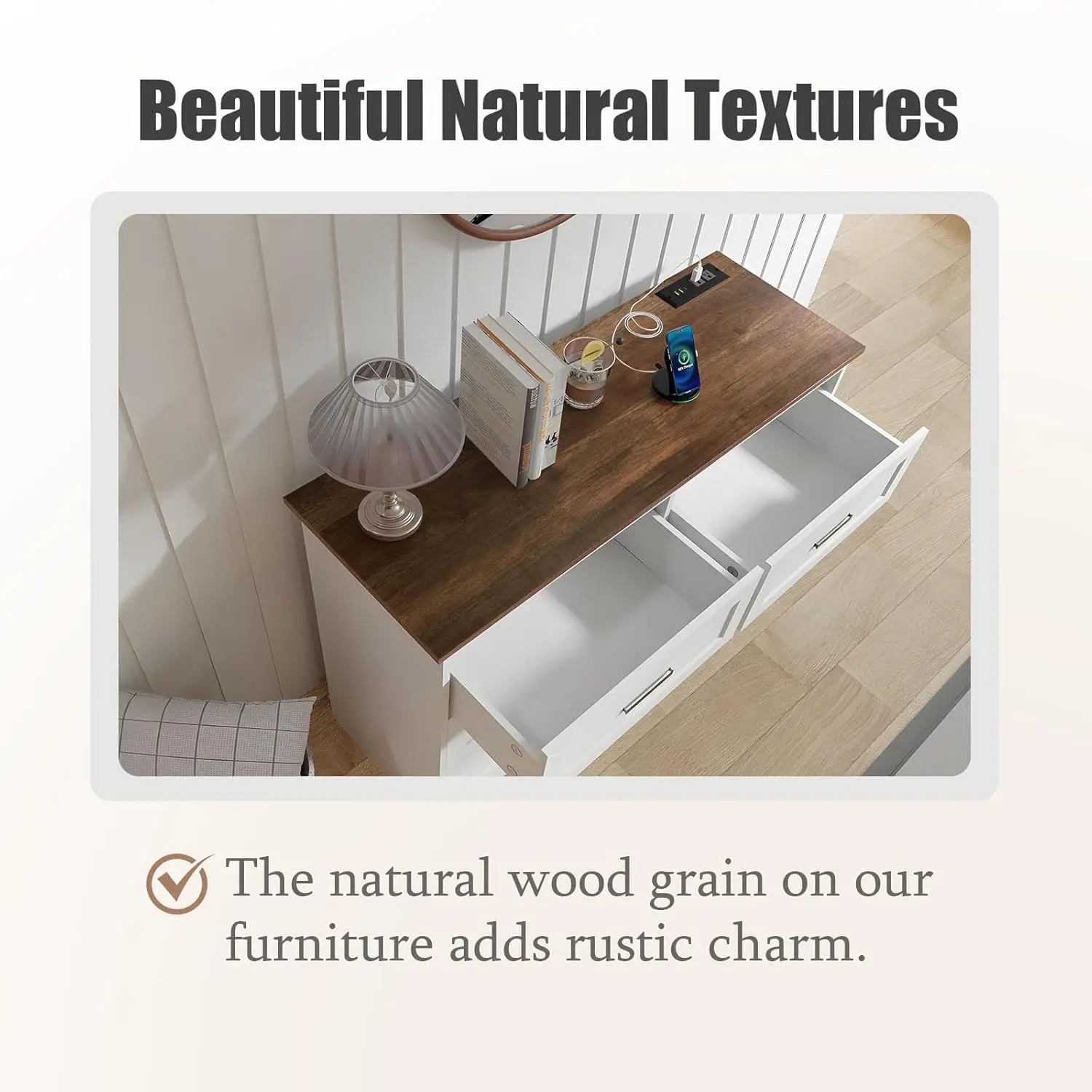 Farmhouse Dresser for Bedroom 6 Drawers Dresser with Power Outlets Rustic Chest of Drawers with Natural Texture, Customized