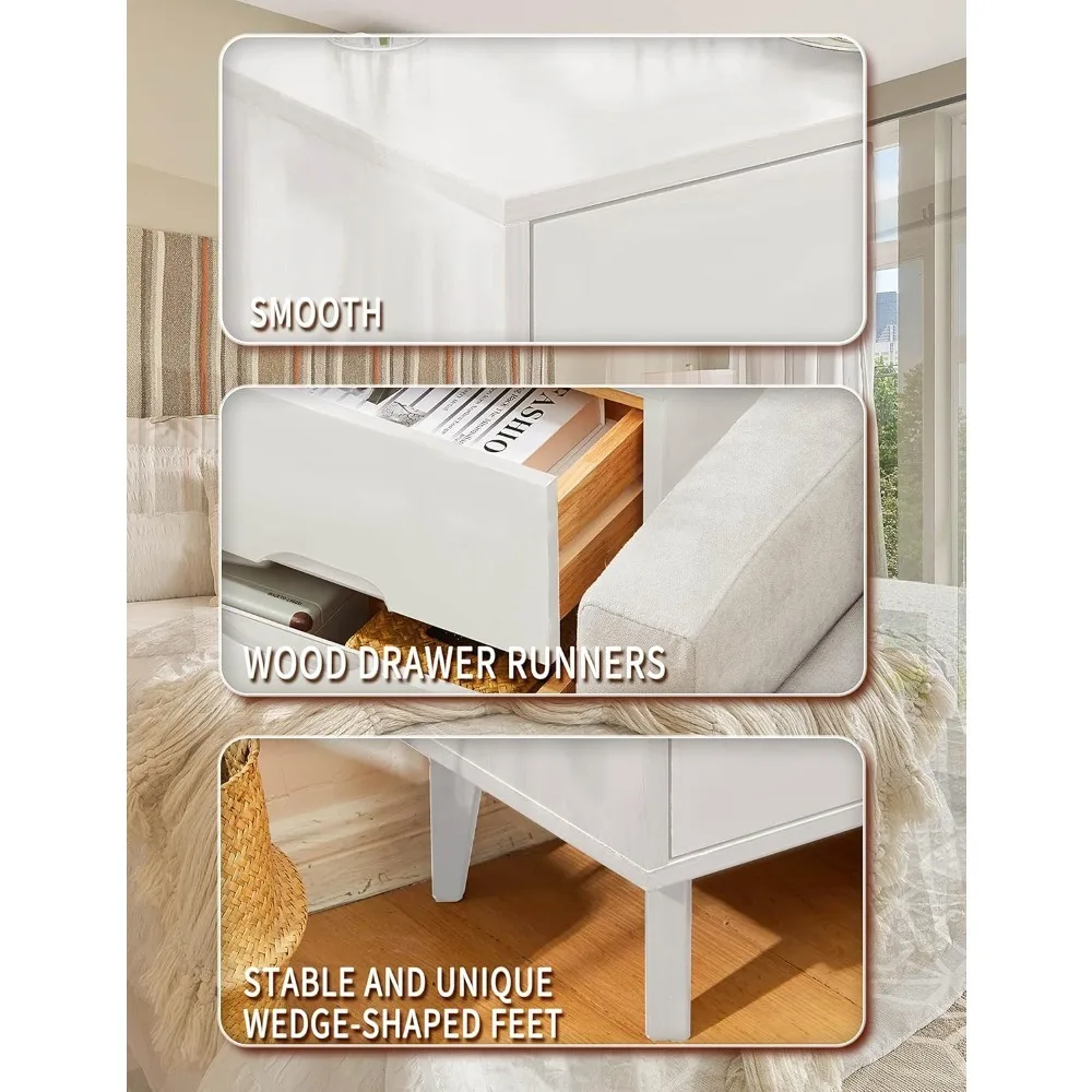 Fluted Nightstand with 2 Drawers Large Wide Wood Night Stand Bedside Table for Bedroom Mid-Century Modern Storage Bed Side Tabl