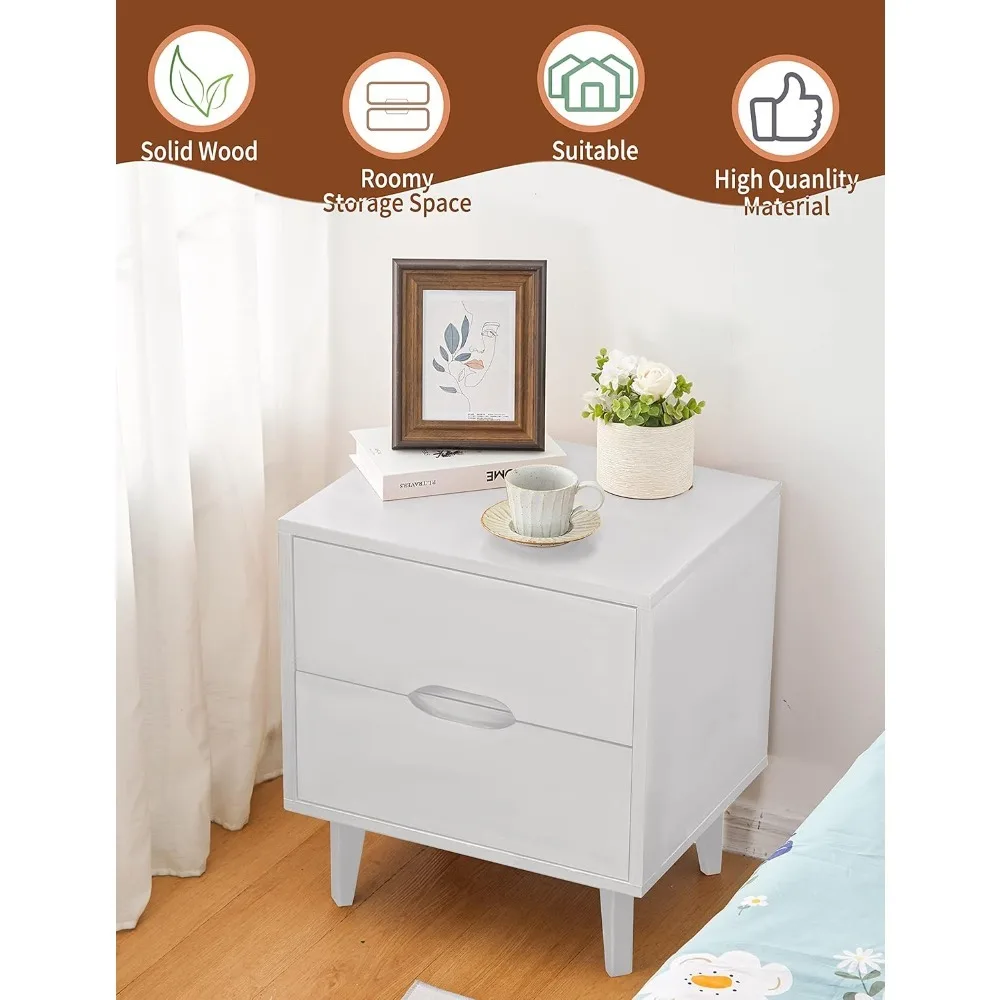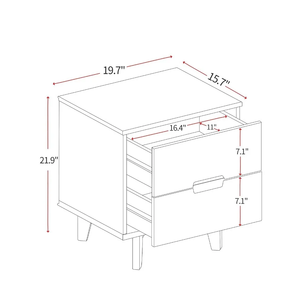 Mid Century Modern Grooved Handle Wood Nightstand Side Table Bedroom Storage Drawer and Shelf Bedside End Table, 2, Customized