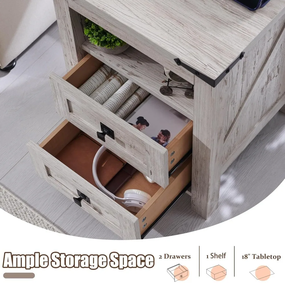 Nightstand with Charging Station, End Table, Side Table with 2 Drawers Storage Cabinet for Bedroom, Living Room,, Customized