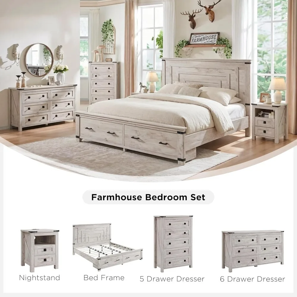 Farmhouse Dresser for Bedroom 6 Drawers Dresser with Power Outlets Rustic Chest of Drawers with Natural Texture, Customized