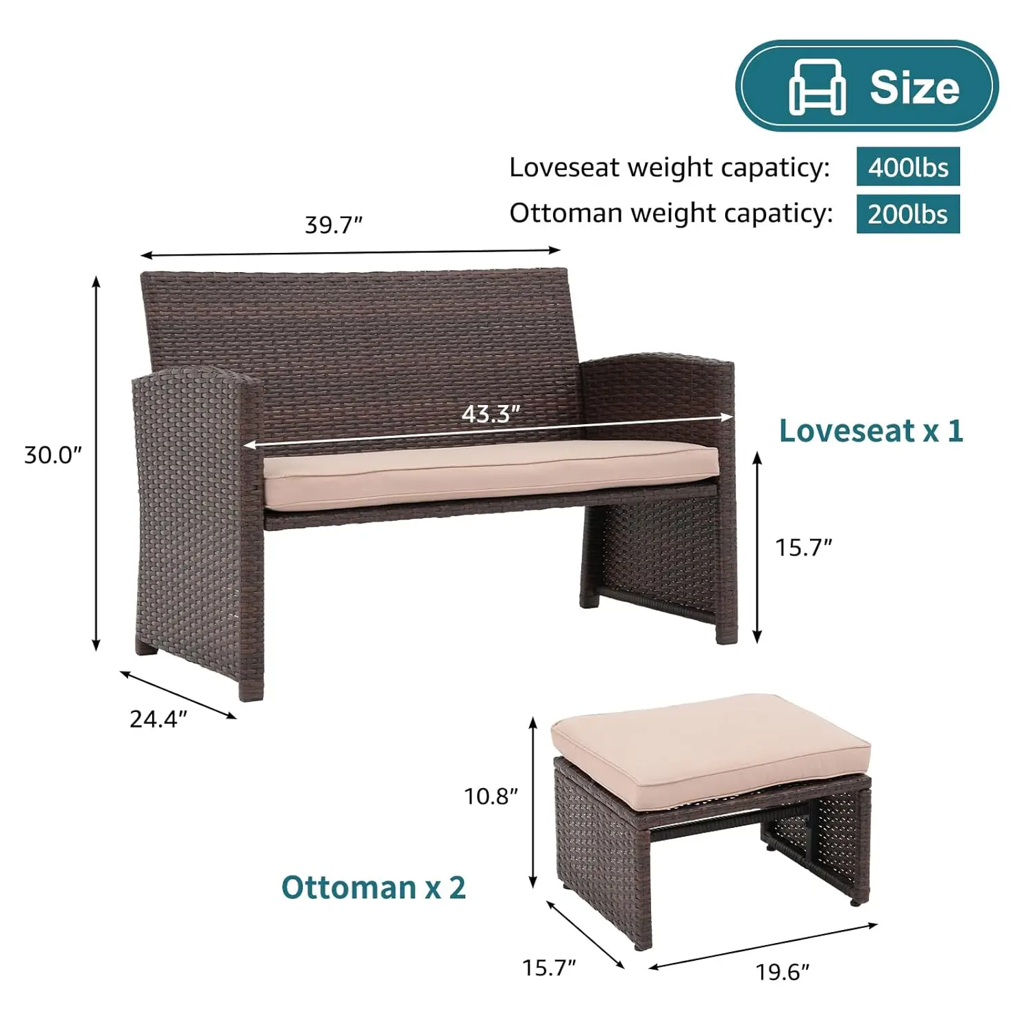 Outdoor Loveseat 3 Piece Patio Furniture Set Outdoor Conversation Set All-Weather Wicker Love Seat with, Customized
