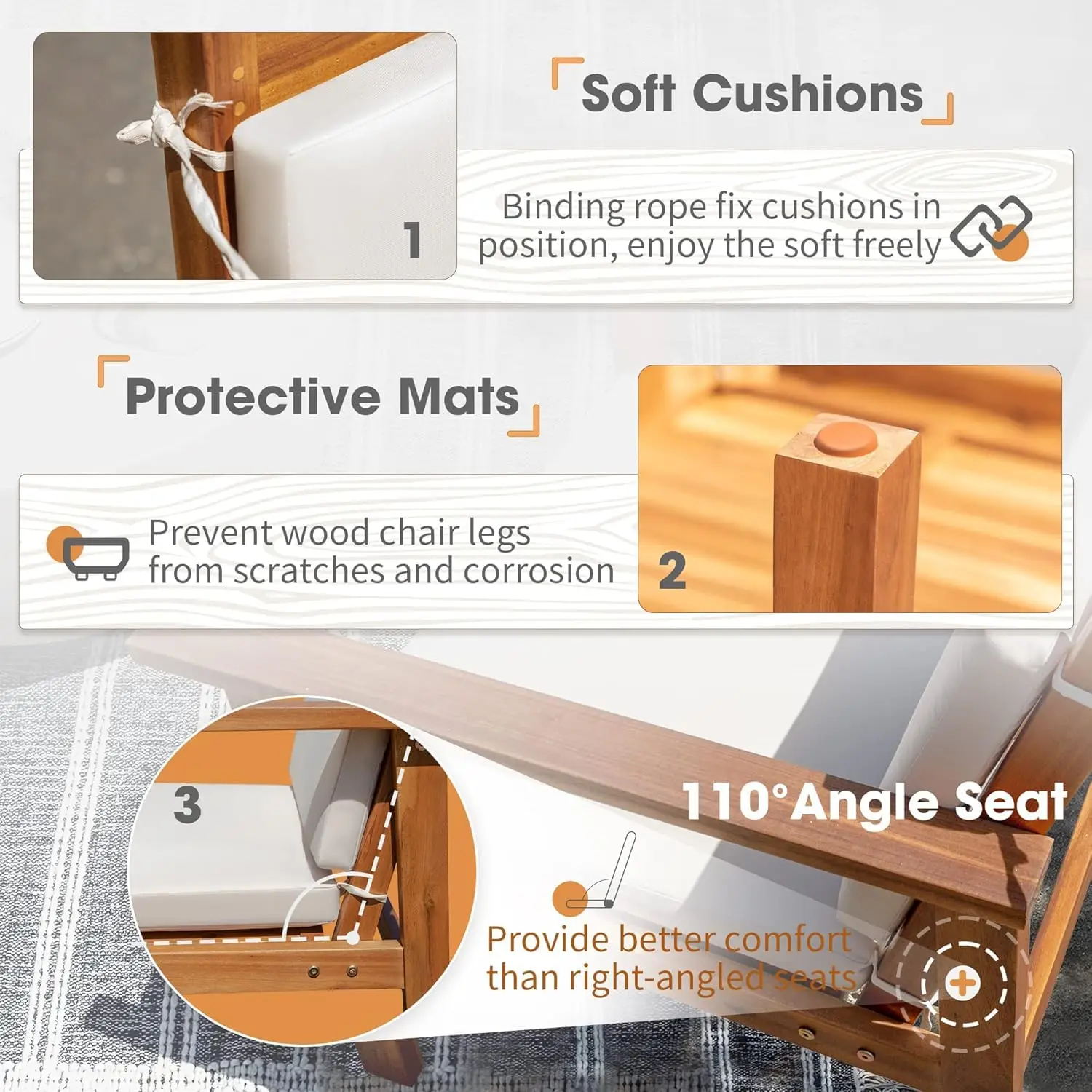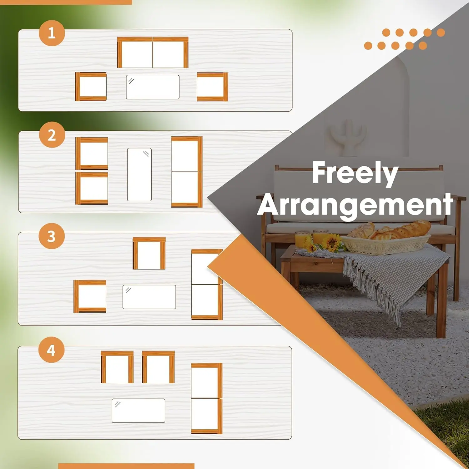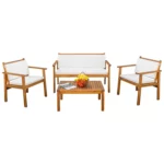 Patio Furniture 4 Piece Acacia Wood Outdoor Conversation Sofa Set with Table & Cushions Porch Chairs for Garden,, Customized