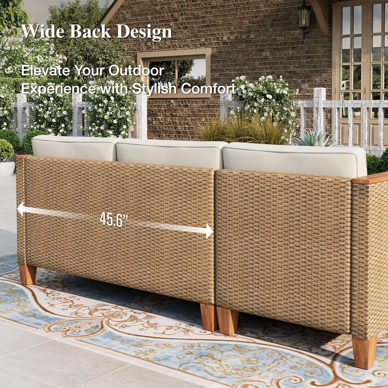 Home Outdoor Furniture Small Patio Furniture Set, 3 Pieces Wicker Outdoor Sectional Sets,Yellow Rattan Conversation Set with Sofa , Customized
