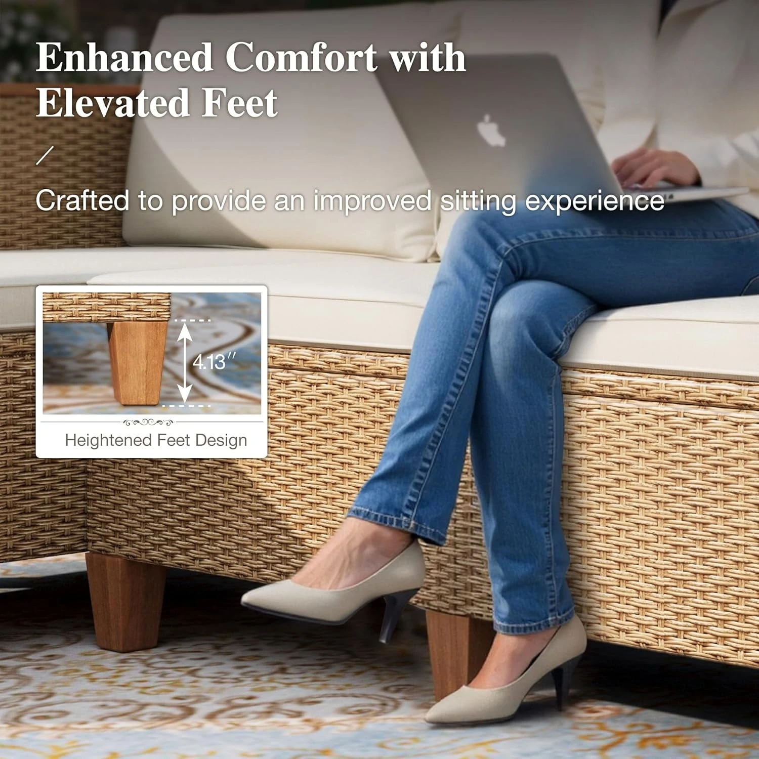 Small Patio Furniture Set, 3 Pieces Wicker Outdoor Sectional Sets,Yellow Rattan Conversation Set with Sofa , Customized